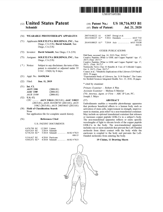 Purpose: To determine if the LifeWave X39 non-transdermal photobiomodulation active patch would show improved production of GHK-Cu over controls in a double blind randomized controlled trial.